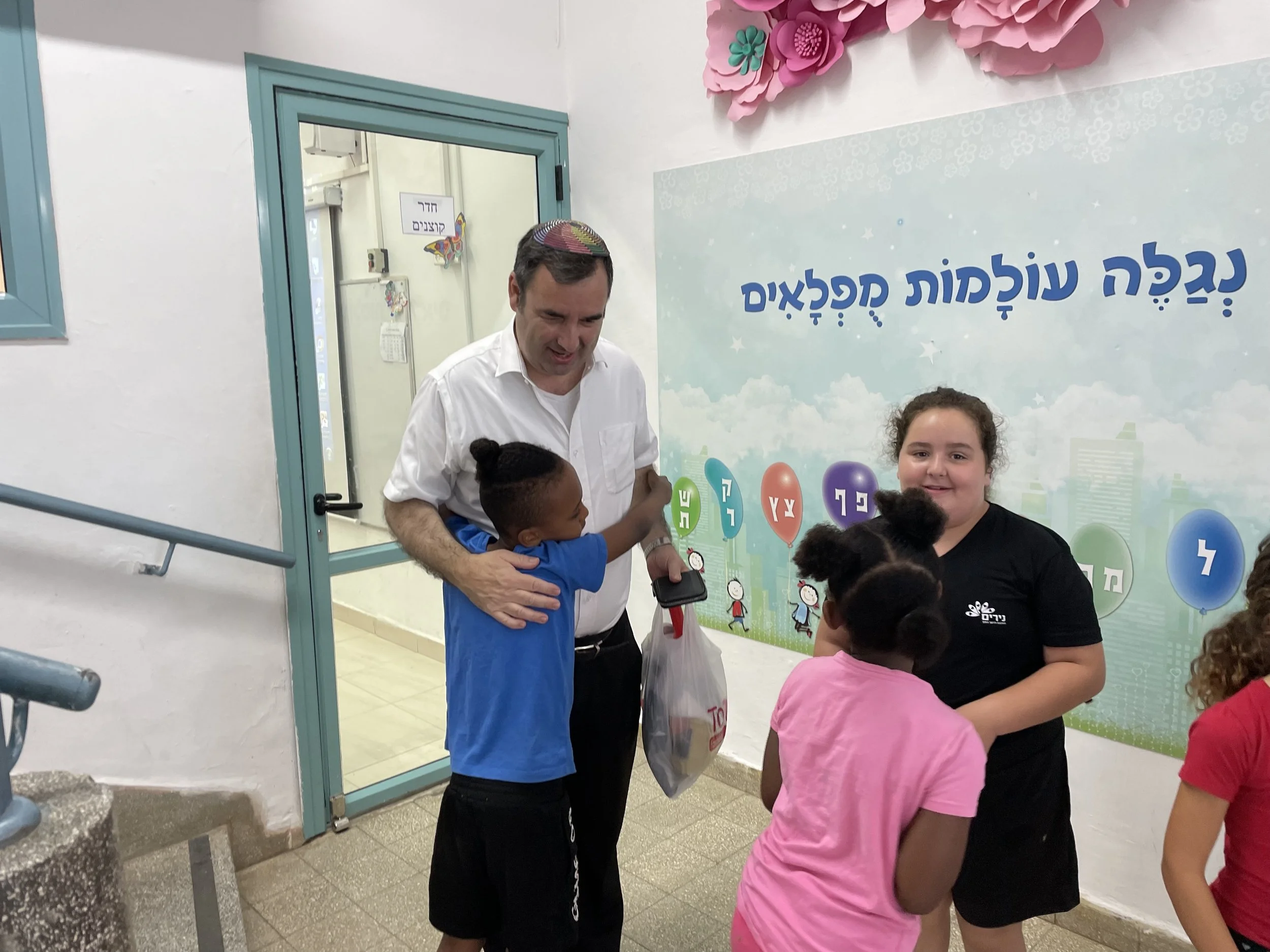 Here’s a photo of Rabbi Edgar Nof doing Mitzvahs in a Haifa school from two years ago. (Photo: NG)